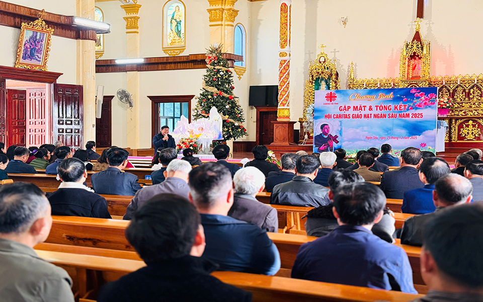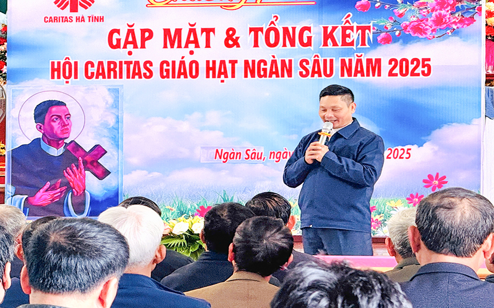 Buổi gặp gỡ có sự hiện diện của Cha Phêrô Nguyễn Xuân Đình – Quản Hạt Ngàn Sâu, Cha Giám đốc Caritas Giáo phận, Quý soeur Văn phòng Giáo phận, Cha đặc trách Caritas Giáo hạt, quý cha trong Giáo hạt và toàn thể ban điều hành Caritas các giáo xứ thuộc Giáo hạt Ngàn Sâu. Sự hiện diện của các vị mục tử và những người đứng đầu công tác Caritas giáo phận đã tạo thêm động lực và khích lệ tinh thần cho các cộng tác viên Caritas tại các Giáo xứ. Trong buổi gặp gỡ, ông trưởng ban đã trình bày báo cáo tổng kết hoạt động Caritas năm 2025. Qua báo cáo, có thể thấy được sự năng động và sáng tạo của các ban điều hành Caritas giáo xứ trong việc triển khai các hoạt động bác ái, từ việc hỗ trợ người nghèo, thăm viếng người bệnh, xây dựng nhà, hỗ trợ bò giống đến các chương trình học bổng cho trẻ em có hoàn cảnh khó khăn.